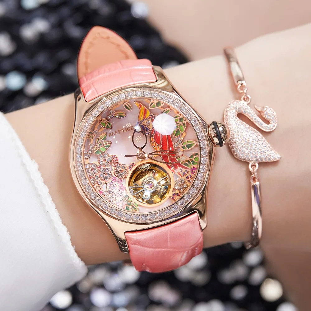 1 review for Reef Tiger/RT Womens Luxury Fashion Watches Diamond Automatic Tourbillon Watch Leather Strap Watch Relogio Feminino RGA7105